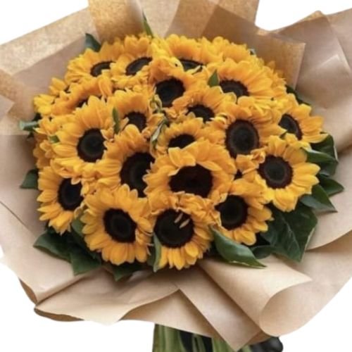 HERMOSO RAMO DE TULIPANES Y GIRASOLES CON FOLLAJE E ILUCION