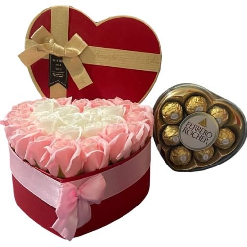 HERMOSO RAMO DE TULIPANES ROSAS Y BOMBONES FERREROS